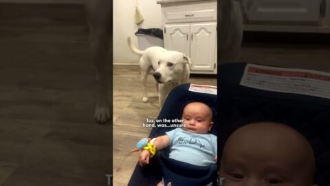 Pittie Who’s The Baby Of The Family Reluctantly Gets Human Brother | The Dodo